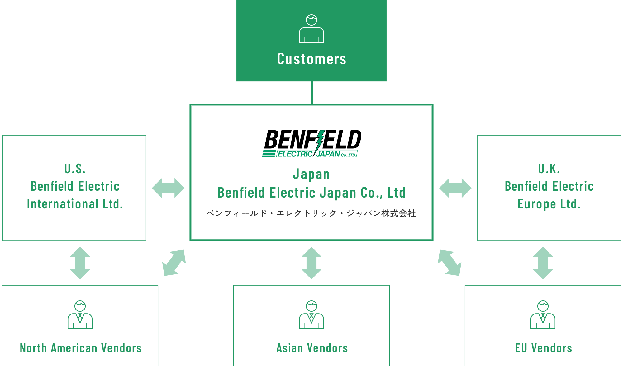グループ会社であるBenfield Electric International, Benfield Electric Europe との緊密な意思疎通を図り、アライアンスパートナー、世界各地のメーカーとの強固な信頼ネットワークで、日本のお客様に最適なソリューションをお届けします。